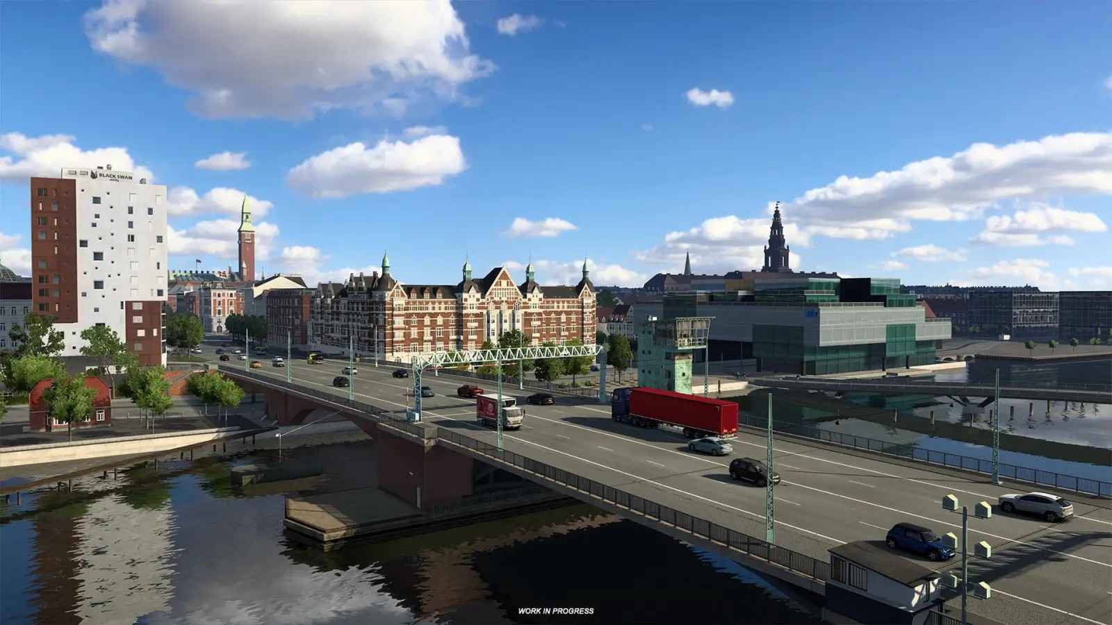 اول و مهمتر از همه، کپنهاگن به طور کامل از پایه بازسازی شده است و به بازیکنان تجربهای تازه از رانندگی در یکی از نمادینترین شهرهای اسکاندیناوی ارائه میدهد. این کار به هیچ وجه کار کوچکی نبوده است، «شهر کپنهاگن بزرگترین پروژه من از زمانی بود که شروع به کار در شرکت SCS کردم.» آلبرت ب.، یکی از طراحان نقشه ما، به ما میگوید.