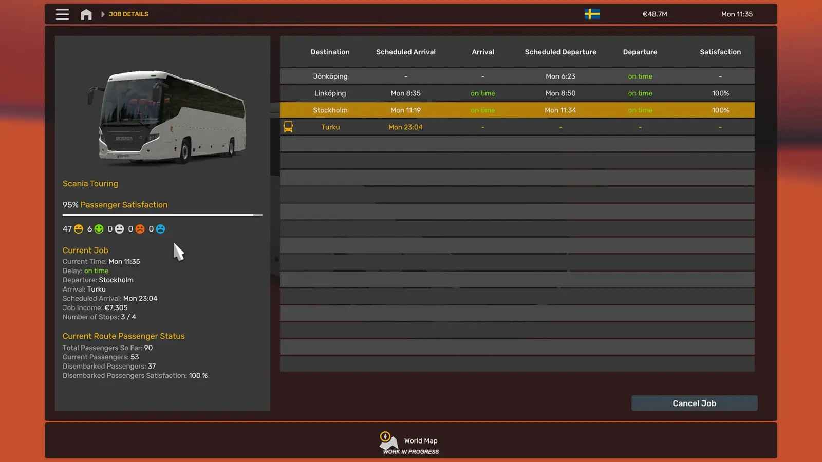 متعادل کردن تجربه یک اولویت بوده است. «ما نمیخواهیم به نقطهای برسیم که بازی بازیکن را به خاطر استفاده از راهنما تحسین کند، مسافران در دنیای واقعی برای این کار به راننده دست نمیزنند. در واقع، ما پیدا کردن راههایی برای افزایش رضایت را بسیار سختتر از کاهش آن یافتهایم.» تغییرات بر اساس تستهای اولیه قبلاً اجرا شدهاند، وویچچ به ما میگوید: «ما سختی را افزایش دادیم، افزایشها و کاهشهای رضایت اکنون بسیار برجستهتر هستند. همچنین نحوه افزایش رضایت را تغییر دادیم. دیگر به زمان سپری شده بستگی ندارد، بلکه به مسافت طی شده بستگی دارد که معتقدیم این بسیار منصفانهتر است.»
